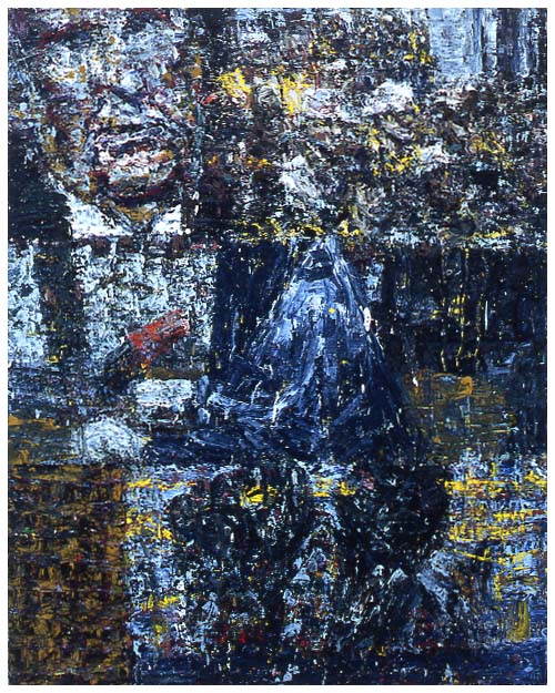 "Feuerwehrmänner" (2003, Öl auf Leinwand, 200 x 160 cm)