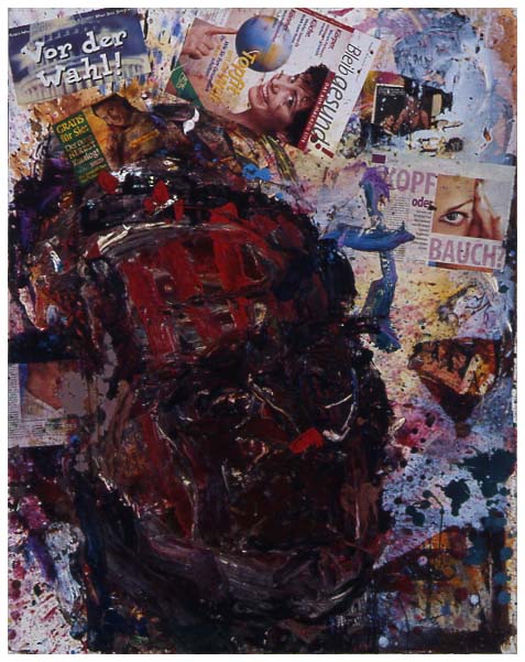 "Köpfe und Collagen 5" (1999/2000, Öl / Collage auf Leinwand, 100 x 80 cm)