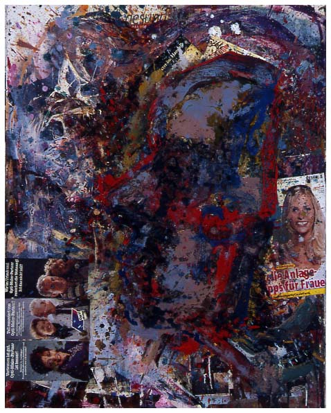 "Köpfe und Collagen 6" (1999/2000, Öl / Collage auf Leinwand, 100 x 80 cm)