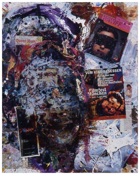 "Köpfe und Collagen 8" (1999/2000, Öl / Collage auf Leinwand, 100 x 80 cm)