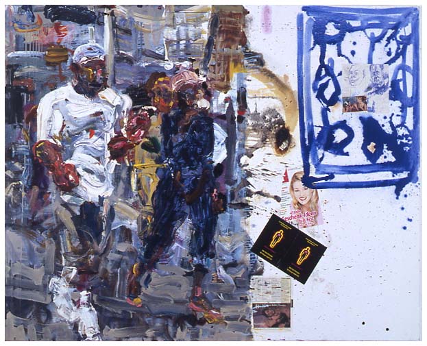 "Downtown 2" (2000/2001, Öl/Collage auf Baumwolle, 160 x 200 cm)
