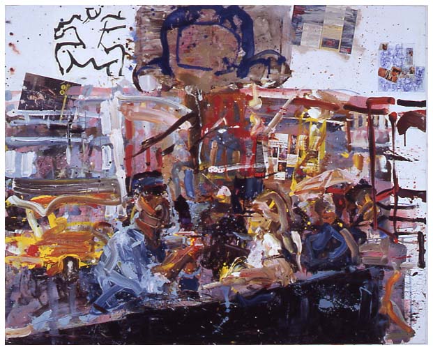 "Vor dem Withney-Museum" (2000/2001, Öl/Collage auf Baumwolle, 160 x 200 cm)