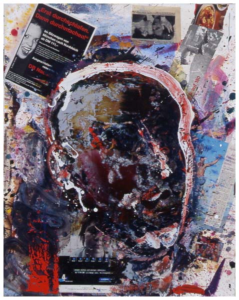 "Köpfe und Collagen 12" (1999/2000, Öl / Collage auf Leinwand, 100 x 80 cm)