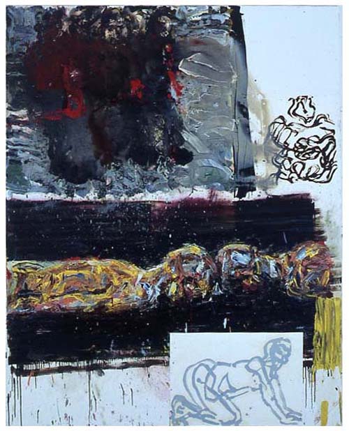 "Schlägertrupp" (2001, Öl auf Leinwand, 160 x 200cm)