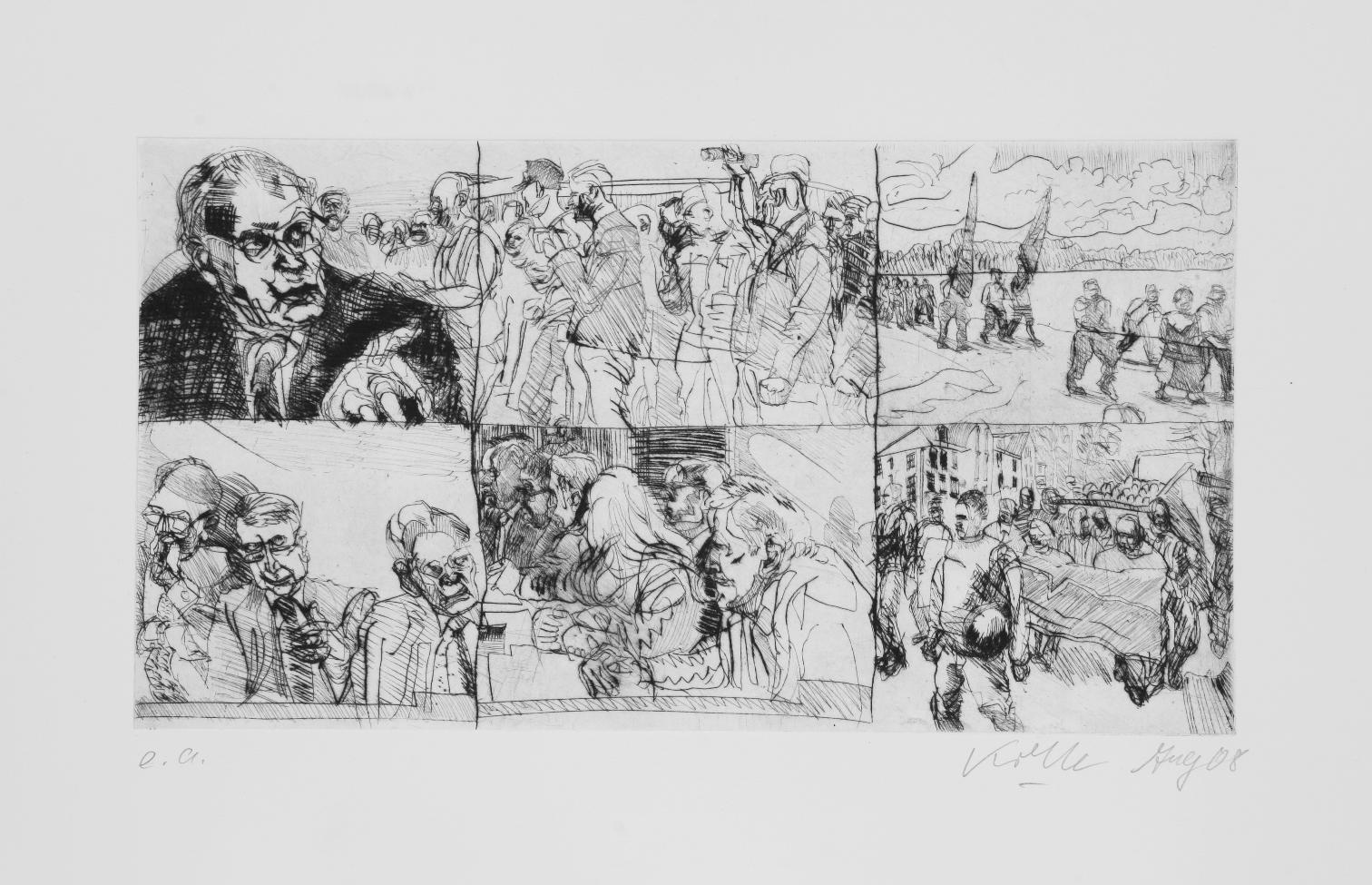 "Myzel des Nazitums II / Bundespräsident a.D." (2008, Radierung, 17,5 x 32,5 cm)