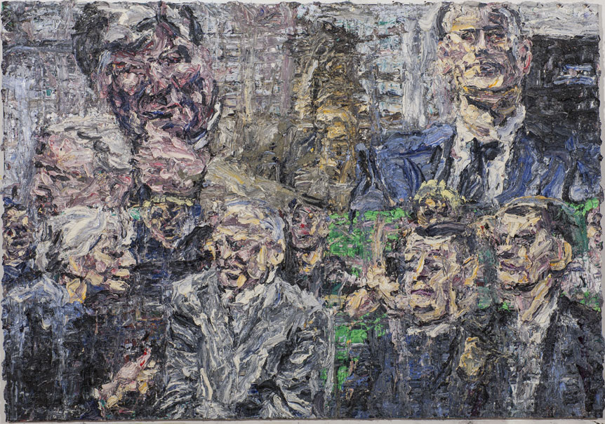 "Lagarde und Schäuble / Sächsische Polizisten im Landtag" (2012/2013, Öl auf Baumwolle, 140x200 cm)