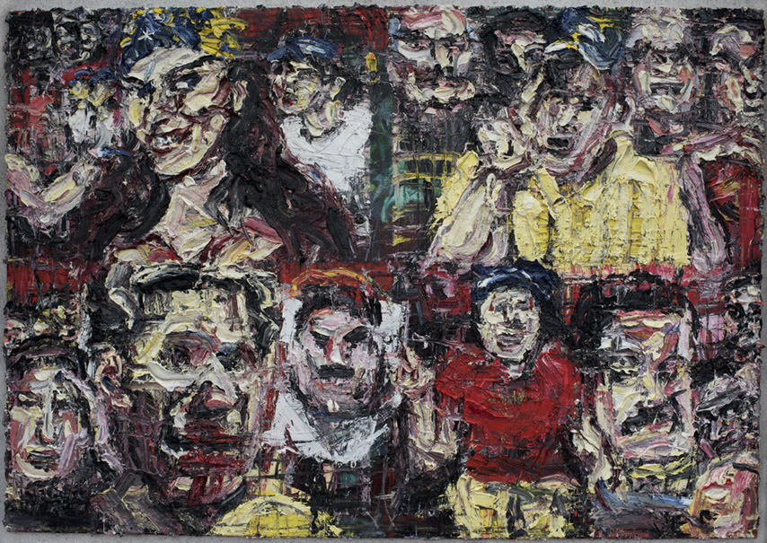 "Venezuela Präsident Maduro und Gegner" (2013/2014, Öl auf Baumwolle, 140 x 200 cm)