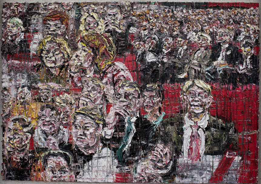 "Bundeskongress des DGB, DGB-Chef Reiner Hoffmann" (2014, Öl auf Baumwolle, 140 x 200 cm)