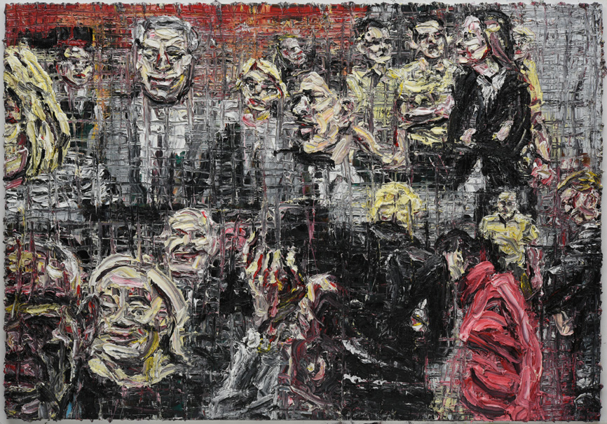 "Marine Le Pen / Nigel Farage (Ukip) und Zschäpeprozess" (2014, Öl auf Baumwolle, 140 x 200 cm)
