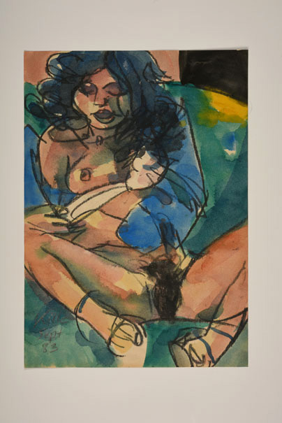 "Pin-up 1" (1983, Aquarell/Kreide auf Papier, 30 x 12 cm)
