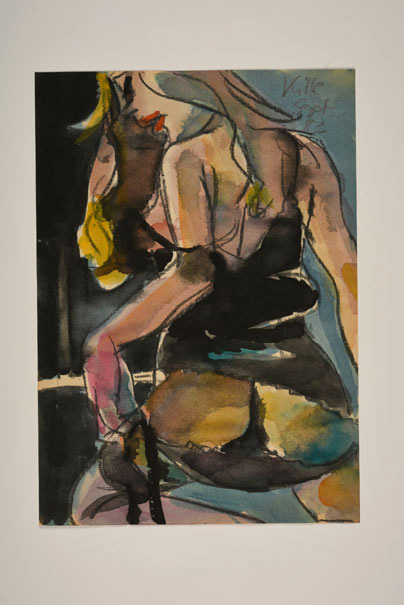 "Pin-up 4 " (1983, Aquarell/Kreide auf Papier, 30 x 12 cm)