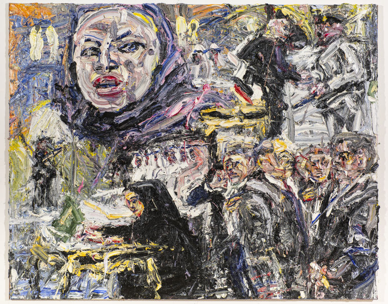 "Deutsche Wirtschaft in Saudi Arabien z.b. Joe Kaeser, Siemens" (2017, Öl auf Baumwolle, 160 x 200 cm)